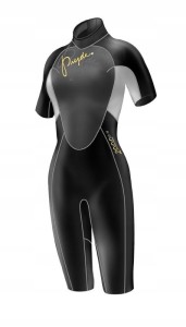 - Typowo letnia, damska, krótka pianka Neil Pryde. Cała pianka jest zbudowana z odpornego i wytrzymałego neoprenu Dura-Flex pokrytego na zewnątrz w całości (oprócz panelu na klatce piersiowej) dzianiną nylonową co bardzo podnosi wytrzymałość neoprenu i odporność na uszkodzenia np. przez przypadkowe zaczepienie. Panele na ramionach i pod rękawami są wykonane z lekkiego i bardzo elastycznego neoprenu Apex-Flex, o rozciągliwości 230%. Panel na piersiach i plecach jest wykonany z neoprenu H-Foam, który nie jest pokryty nylonem na zewnątrz, dzięki czemu jest bardzo śliski dla wody – woda spływa szybciej i czemu odbiera znacznie mniej ciepła a wychłodzenie postępuje dużo wolniej. Szwy typu Flatlock – przepuszczalne dla wody i wiatru. Pionowy suwak na plecach.